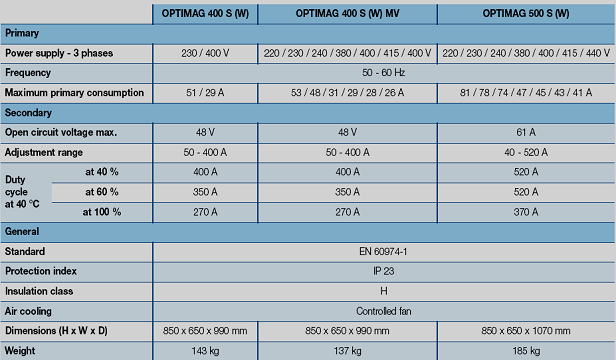 MIG/MAG welding equipment designed for heavy-duty quality work. Its 6 thyristors bridge provides a continuous stable arc adjustment, it is completed by a 4-rollers separated wire-feeder regulated by tachometer. Its OPTI system adjustment brings an extreme simplicity through a user-friendly interface and pre-adjusted programs. |